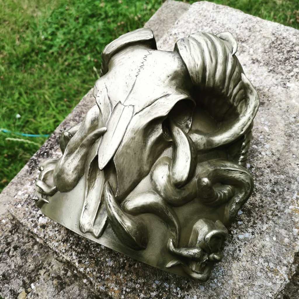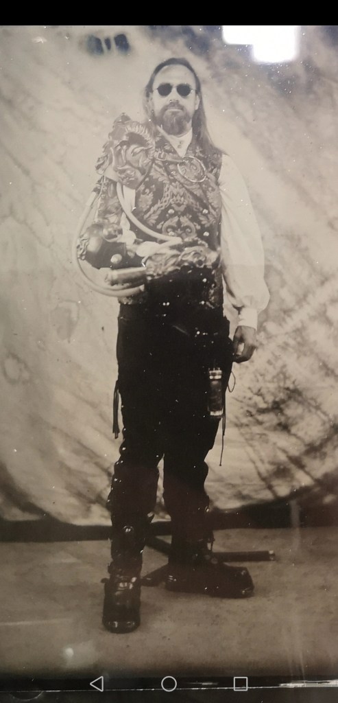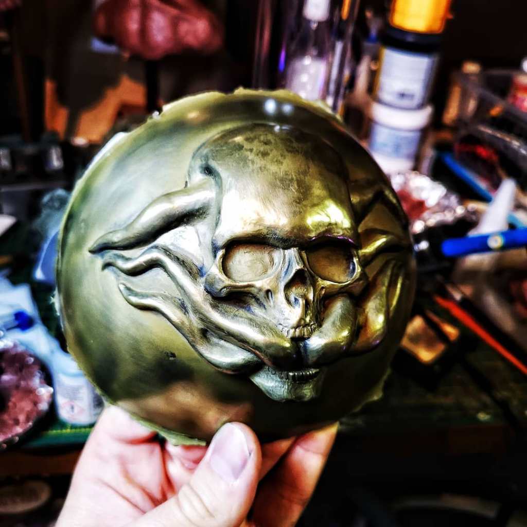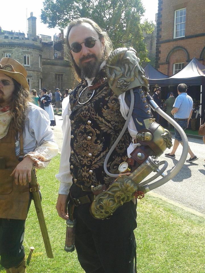 This was created for Weekend at The Asylum. I wanted to incorporate alot more sculpture into this piece than I have in previous steampunk items, so I included alot of sculpted motifs in this. The pieces were cold cast with brass powder to give them a metallic finish.
