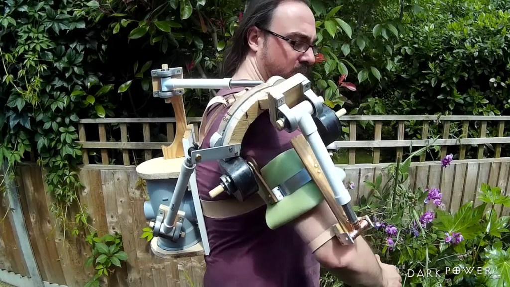 This is a costume piece that was created for the Lincoln Steampunk Asylum festival. It’s inspired by the ‘exo-suit’ worn by Matt Damon in Neill Blomkamp’s Elysium.