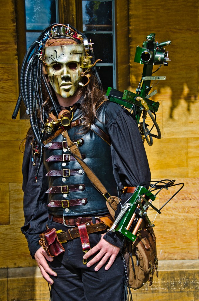 This is a steampunk costume I created for a music video. The original piece was displayed in a steampunk exhibition in Kew Steam Museum and was even featured in a book! It’s since proved rather popular with people and I’ve built a number of different versions detailed below.